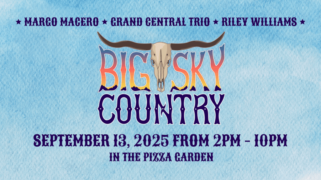 *please note that the Pizza Garden will be CLOSED to the public for Big Sky Fest. Tickets must be bought to enjoy the event and Pizza Garden on September 13*