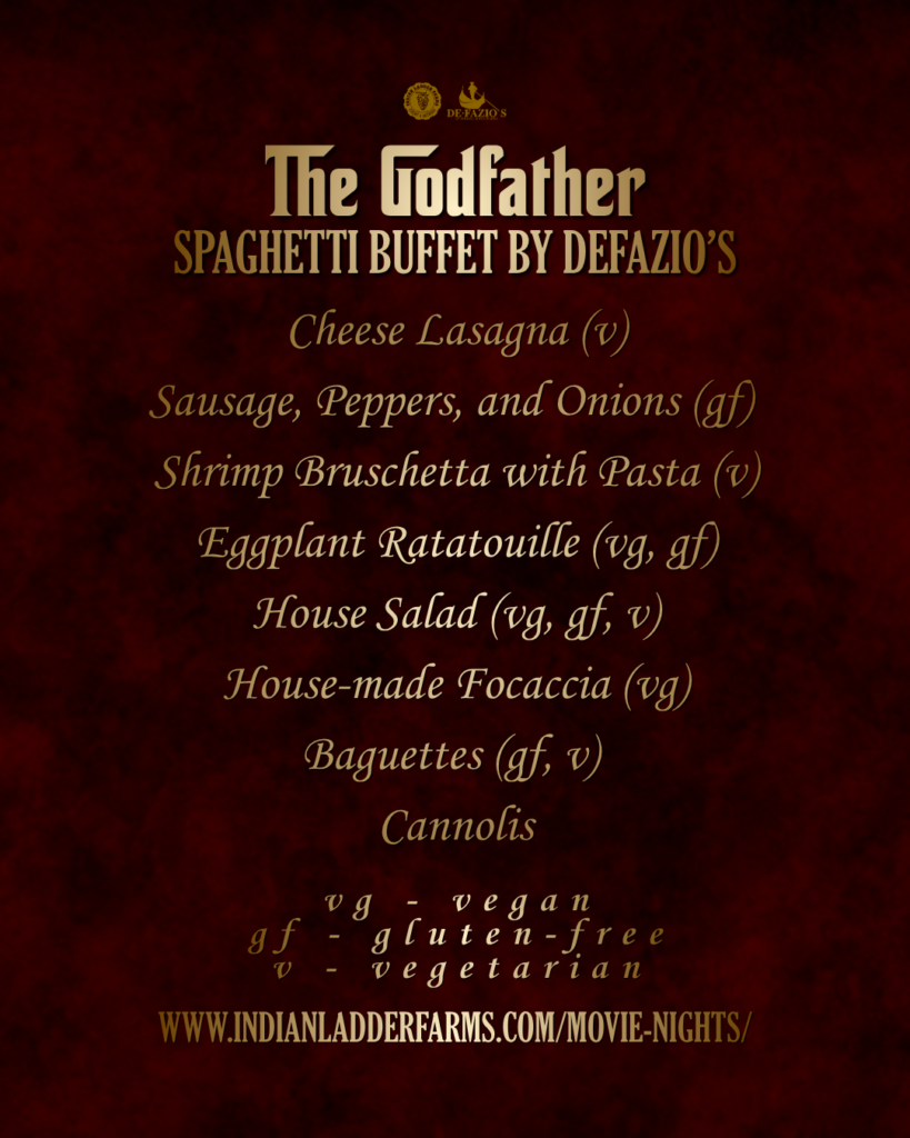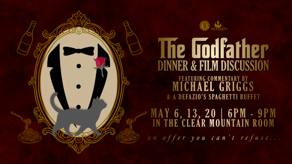 Join us for dinner & a movie night featuring the Francis Ford Coppola’s classic films on the big screen in the Clear Mountain Room! Enjoy a delicious spaghetti buffet from DeFazio’s.
