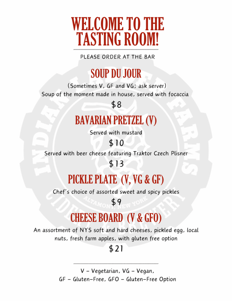 Available in the Tasting Room on Thursdays & Fridays (4-8), Saturdays (11-7), and Sundays (11-5)